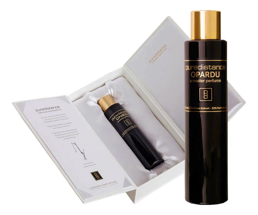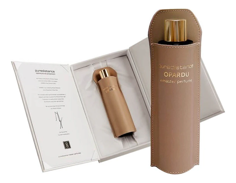 Puredistance – Opardu («Пьюредистанс. Опарду») – новые концентрированные духи для женщин, составленные парфюмером Annie Buzantian и выпущенные молодым австрийским селективным брендом Puredistance в 2012 году. Винтажный букет относится к группе цветочных благоуханий, он приглашает своих обладательниц в богемный ночной Париж 20-х годов ушедшего века, напоминает о минувшей эпохе и временах завораживающих парфюмов, пьянящей роскоши, беззаботности и раскованности.