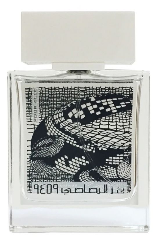 Rumz Al Rasasi 9459 Pour Elle — необычный по звучанию, природный и чуточку загадочный женский цветочно-древесный аромат с легкими мускусными акцентами, выпущенный известным арабским парфюмерным брендом Rasasi. Черно-белый принт с изображением крокодила на лаконичном прозрачном прямоугольном флаконе, намекает на тематику джунглей и нетронутой человеком природы.