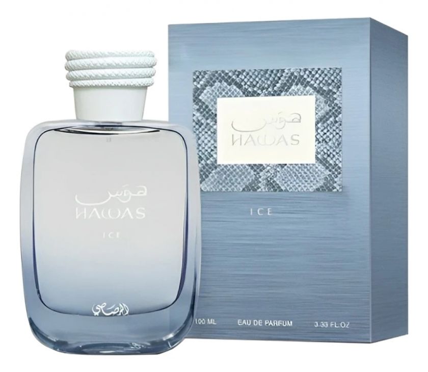 Rasasi Hawas Ice — освежающий мужской древесно-цитрусовый аромат, выпущенный в 2023 году арабским парфюмерным домом Rasasi. Аромат представляет собой фланкер парфюма Rasasi Hawas 2015 года. Это более смелая и холодная версия исходного парфюма, добавляющая взрыв ледяных запахов, переплетающихся со специями, а также твердую, более острую базу из древесных нюансов. Hawas Ice By Rasasi — это аромат, воплощающий в себе суть баланса и элегантности, что делает идеальным для тех, кто его носит.