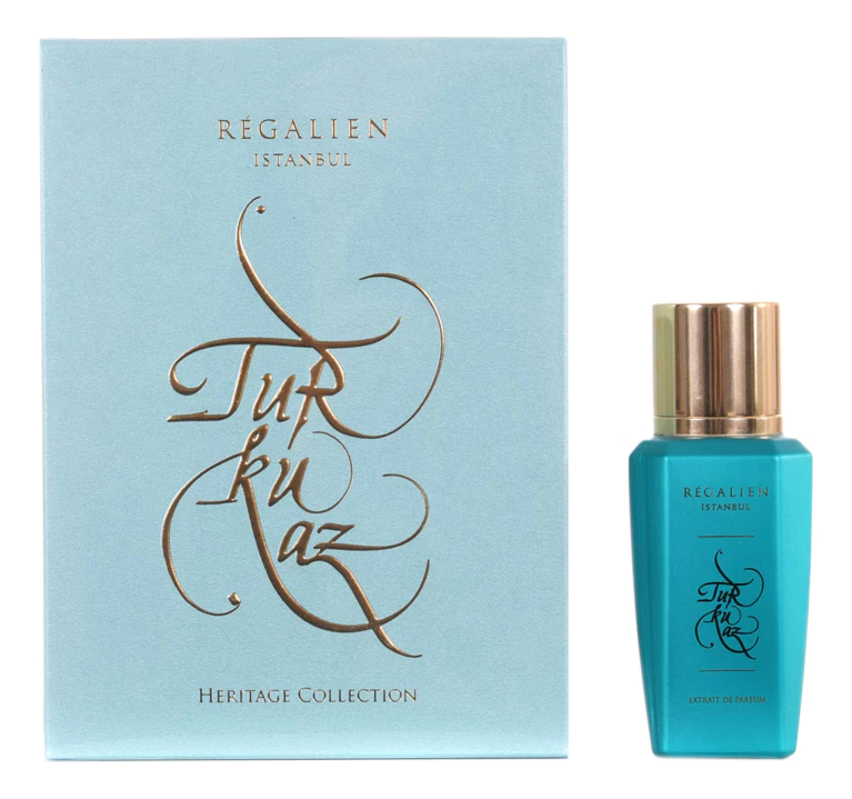 Regalien Turkuaz — аромат 2021 года для мужчин и женщин. Парфюмерная композиция из линейки The Heritage Collection премиального турецкого бренда вдохновлена красотой Турции и сияет, как один из драгоценных камней в короне правителей Османской империи. Флакон и оформление коробки декорированы причудливой каллиграфией от именитых мастеров.