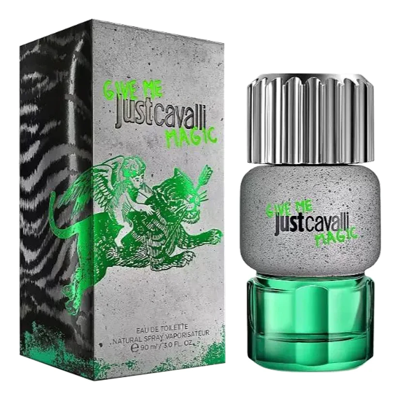 Roberto Cavalli Give Me Magic For Him — мужской восточно-древесный аромат, выпущенный в 2025 году модным домом Roberto Cavalli в рамках ароматического дуэта для нее и для него. Это не парфюм, а ритуал. Заклинание силы, заключенное во флакон. Аромат-талисман для современного шамана мегаполиса — человека, чья сила не кричит, но безмолвно правит реальностью.