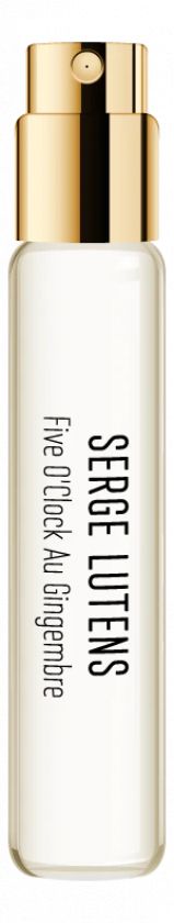 Парфюмерная композиция Five O’Clock Au Gingembre представлена нотами бергамота, засахаренного имбиря, перца, меда, пачули и темного какао.