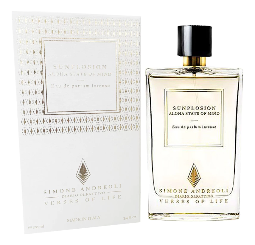 Sunplosion Aloha State Of Mind — экзотический и солнечный фруктово-мускусный унисекс-парфюм, выпущенный в 2021 году итальянским нишевым парфюмерным брендом Simone Andreoli. Вдохновением для создания аромата послужила особая атмосфера Гаваев. Взрыв жизненной силы и энергии гавайского Солнца, серфингисты, тяжелые волны, загорелая кожа и ощущение свободы на великолепных пляжах Оаху. Вкус Гавайев, который воспевает символические фрукты этого удивительного места.