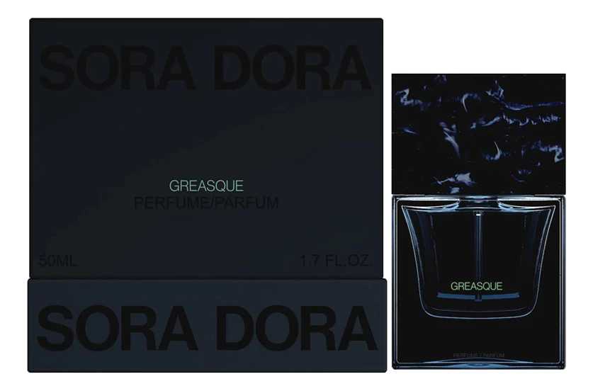 Sora Dora Greasque — одновременно элегантный и неукротимый фужерно-фруктовый унисекс-аромат, выпущенный в 2021 году французским нишевым парфюмерным брендом Sora Dora. Тщательно продуманный аромат является результатом опыта, передаваемого из поколения в поколение в семье парфюмера Антуана Сорадора. Парфюм создан в знак уважения к одноименной французской деревне, парфюмер нашел новый дом,