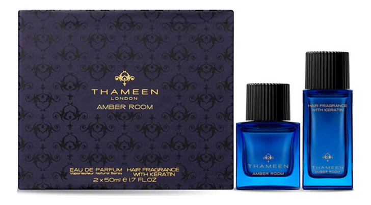 Amber Room — изысканный и загадочный восточный унисекс-парфюм, выпущенный в 2013 году британским нишевым парфюмерным брендом Thameen. Ароматическая композиция с названием «Янтарная комната» вдохновлена янтарной комнатой, некогда украшавшей Екатерининский дворец под Санкт-Петербургом. Находящаяся в самом центре дворца, она была полностью облицована янтарными панелями, покрыта сусальным золотом и зеркалами, словно раздвигающими пространство в бесконечность. Когда в комнате зажигалось более пятисот свечей, создавалась иллюзия, что сияет запертый внутри солнечный свет и мерцает огненное золото. Созданная путем слияния янтаря, золота и зеркал рукотворная сказка была настоящим шедевром, и аромат Amber Room стремится ольфакторным языком отразить ее волшебную роскошь.