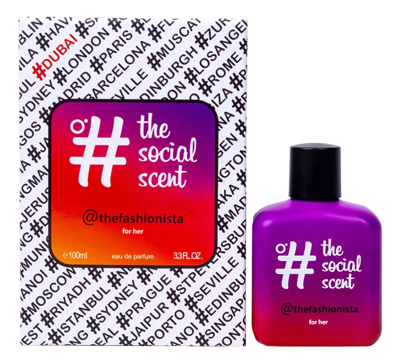 The Social Scent @thefashionista — фруктово-древесный женский аромат с яркими оттенками цветочных нот, выпущенный в 2022 году арабским парфюмерным домом The Social Scent. Ароматическая композиция с названием «Модница» приглашает в загадочный и притягательный мир высокой моды. Fashionista — беспрецедентная и невообразимая подпись для поднятия настроения.