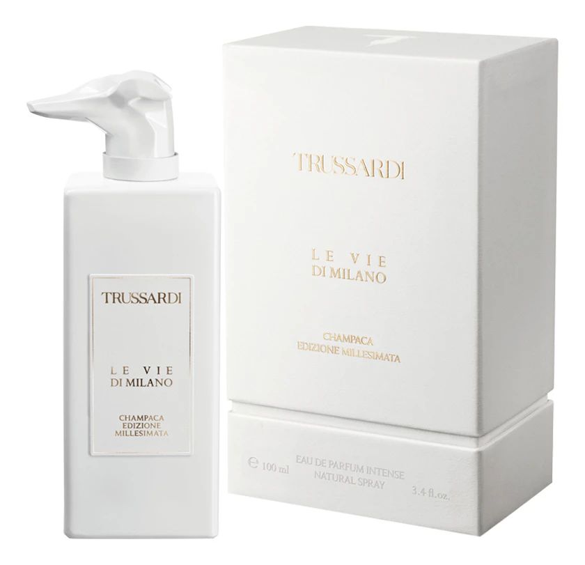 Trussardi Champaca Edizione Millesimata — гурманский, цветочно-амбровый аромат, отдающий дань уважения счастливому детству. Парфюм выпущен в 2024 году итальянским модным домом Trussardi. Это возвращение к беззаботным моментам прошлого и детству. Это суть сладких объятий и отражение радостных воскресных дней, проведенных в миланских кондитерских, наполненных ароматами ванили, миндаля, пралине и лимона.