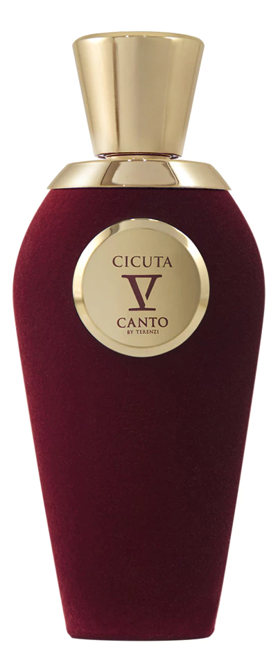 Cicuta – часть эксклюзивной коллекции “Red Collection”, представленной итальянским нишевым брендом V Canto в 2016 году на очередной выставке “Esxence 2016”. Вдохновением автора композиции Paolo Terenzi стала внебрачная дочь папы римского Александра VI Лукреция Борджиа – представительница влиятельного итальянского рода Борджия периода XV – XVI веков. Армат олицетворяет роковую страсть сексуальной и любвеобильной Лукреции, которая имела внебрачные связи с родственниками, а также большое количество любовников, которых могла безжалостно отравить.