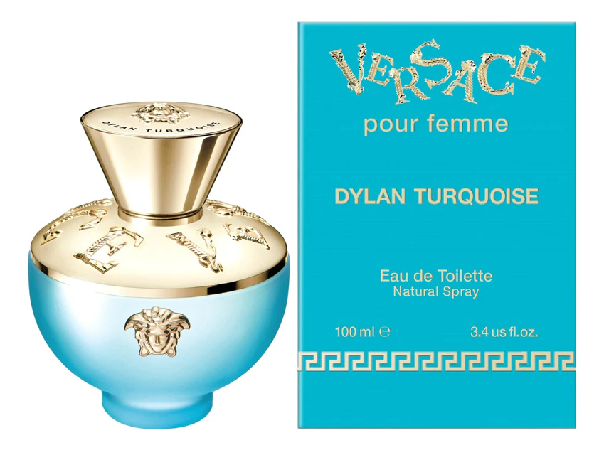 Versace Dylan Turquoise Pour Femme — женская туалетная вода с цветочно-фруктовым ароматом, представленная в 2020 году в рамках парфюмерной коллекции знаменитого модного дома Versace из Италии. Восхитительный и статусный аромат вдохновлен побегом на далекие тропические острова, где под лазурным небом неспешно перекатывает свои волны приятное теплое море.
