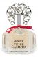 Элегантный флакон имеет шестиугольную форму, увенчан серебристой декорированной крышечкой, на горлышке повязан розовый бантик.