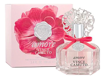 Американский дом моды Vince Camuto выпустил летний женский аромат Amore в ограниченном издании в 2014 году. Новинка посвящена прекрасному чувству любви, радости и гармонии, вечной теме страсти и романтики.