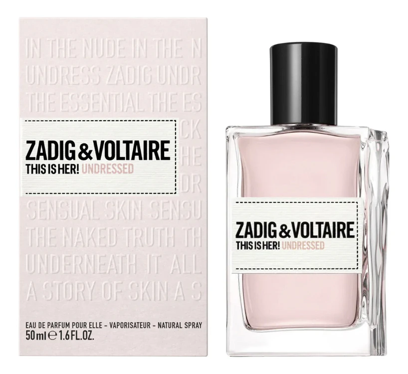Zadig & Voltaire This Is Her Undressed — цветочно-древесный женский аромат с росокшным мускусным шлейфом, впущенный в 2023 году французским модным домом Zadig & Voltaire в рамках ароматического дуэта для нее и для него Undressed. Своим выходом дуэт продолжает выходивший ранее флагманский парфюмерный тандем Zadig & Voltaire This Is Him! и This Is Her! Ароматы стремятся передать чувство тепла и комфорта, которое позволяет владельцу парфюма обрести гармонию с самим собой.