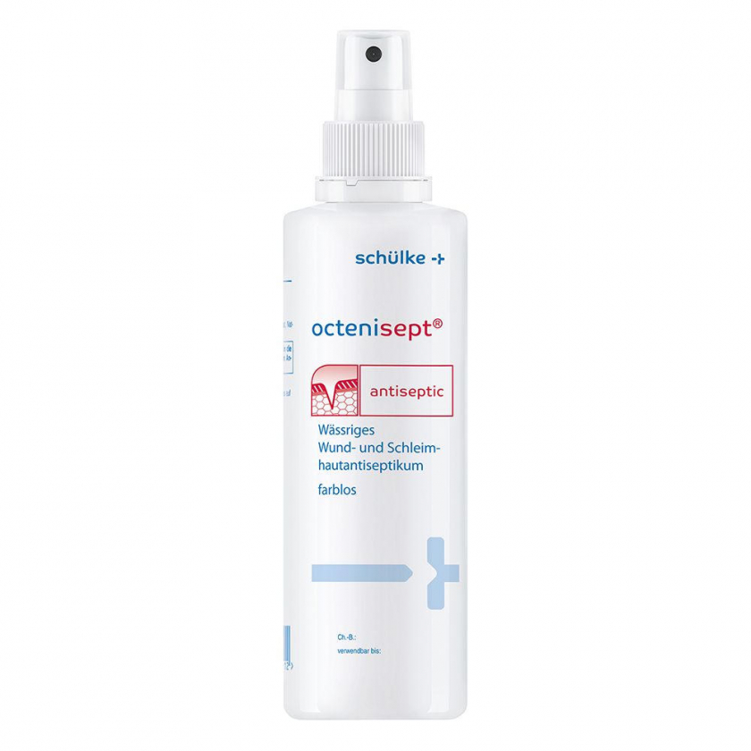 Антисептический раствор для дезинфекции ран и слизистых оболочек с распылителем. Содержит октенидин и феноксиэтанол. Применяется для обработки острых и хронических ран, профилактики инфекций, лечения грибковых поражений кожи между пальцами ног. Подходит для взрослых и детей, включая новорожденных (с осторожностью).