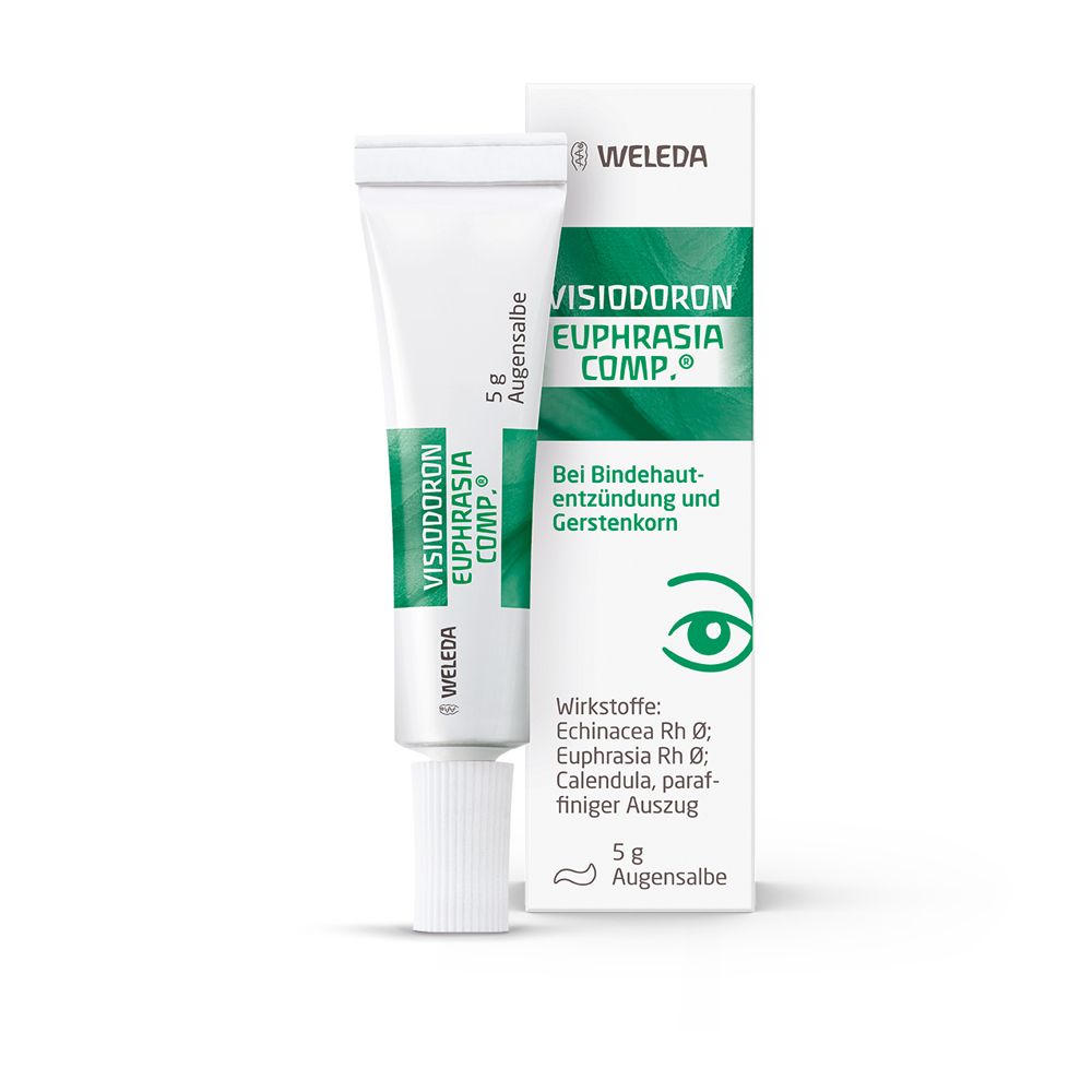 Глазная мазь Visiodoron Euphrasia comp.® для лечения конъюнктивита и ячменя. Содержит натуральные растительные экстракты очанки, календулы и эхинацеи. Облегчает жжение, зуд и отечность, обладает противовоспалительным действием. Без консервантов, подходит для всей семьи, включая младенцев.
