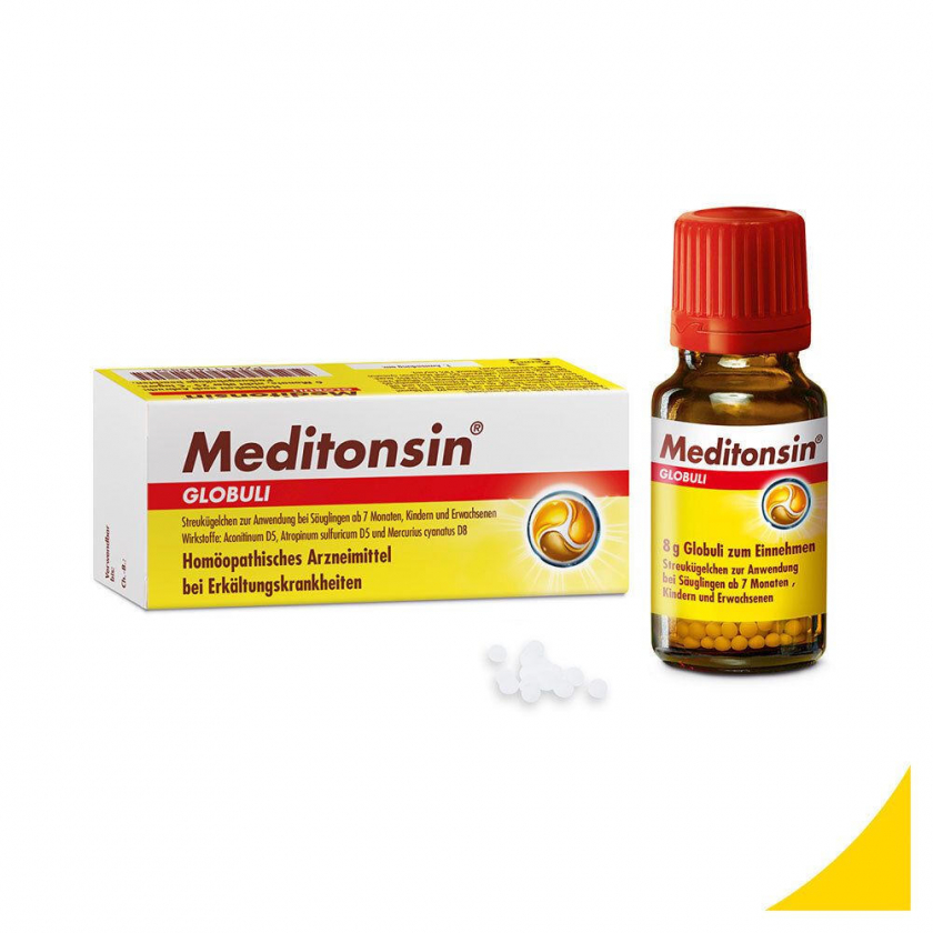 Гомеопатический препарат Meditonsin® Globuli для лечения первых признаков простуды у всей семьи. Натуральное средство при острых воспалениях горла, носа и гортани. Подходит для взрослых и детей от 7 месяцев. Гранулы для рассасывания с растительными компонентами в гомеопатических разведениях.