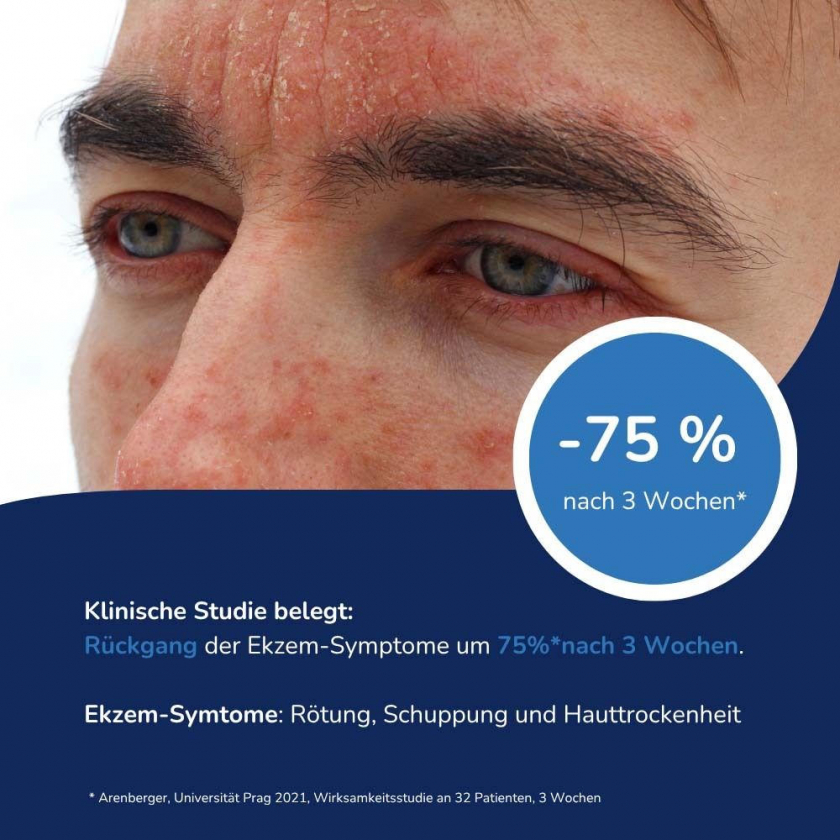 Кортизон-свободный медицинский крем для лечения экземы лица с клинически доказанной эффективностью. Уменьшает покраснение, шелушение и сухость кожи на 72% за 3 недели. Содержит церамиды, глицерин, сквалан, пантенол и бисаболол для восстановления кожного барьера. Без отдушек, красителей и консервантов.