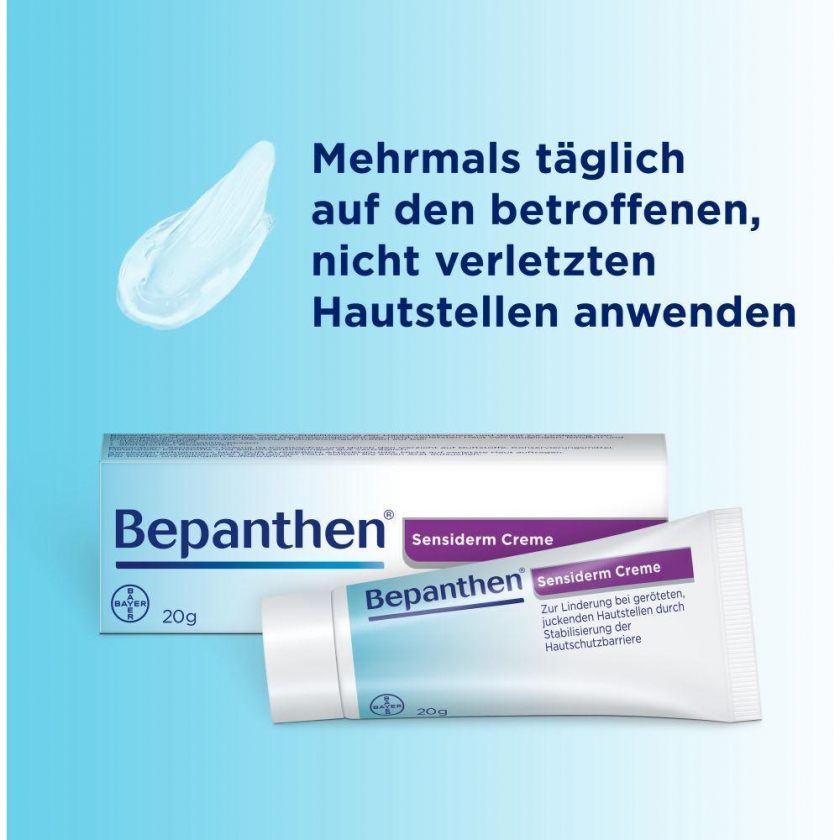 Bepanthen Sensiderm Creme - крем для ухода за кожей, который стабилизирует кожный барьер, снимает зуд и покраснения. Не содержит кортизона, отдушек, красителей и консервантов. Подходит для чувствительной кожи, включая беременных и кормящих женщин.