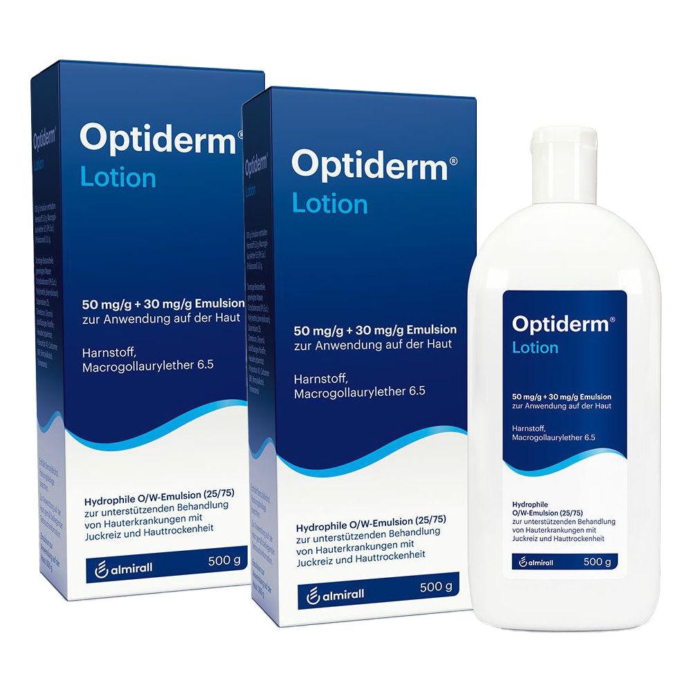 Optiderm® Lotion - лекарственный препарат для лечения сухой и зудящей кожи. Содержит уникальную комбинацию мочевины и полидоканола, которая увлажняет кожу, снимает зуд и восстанавливает кожный барьер. Подходит для лечения нейродермита, экземы, псориаза и других кожных заболеваний. Наносится дважды в день тонким слоем