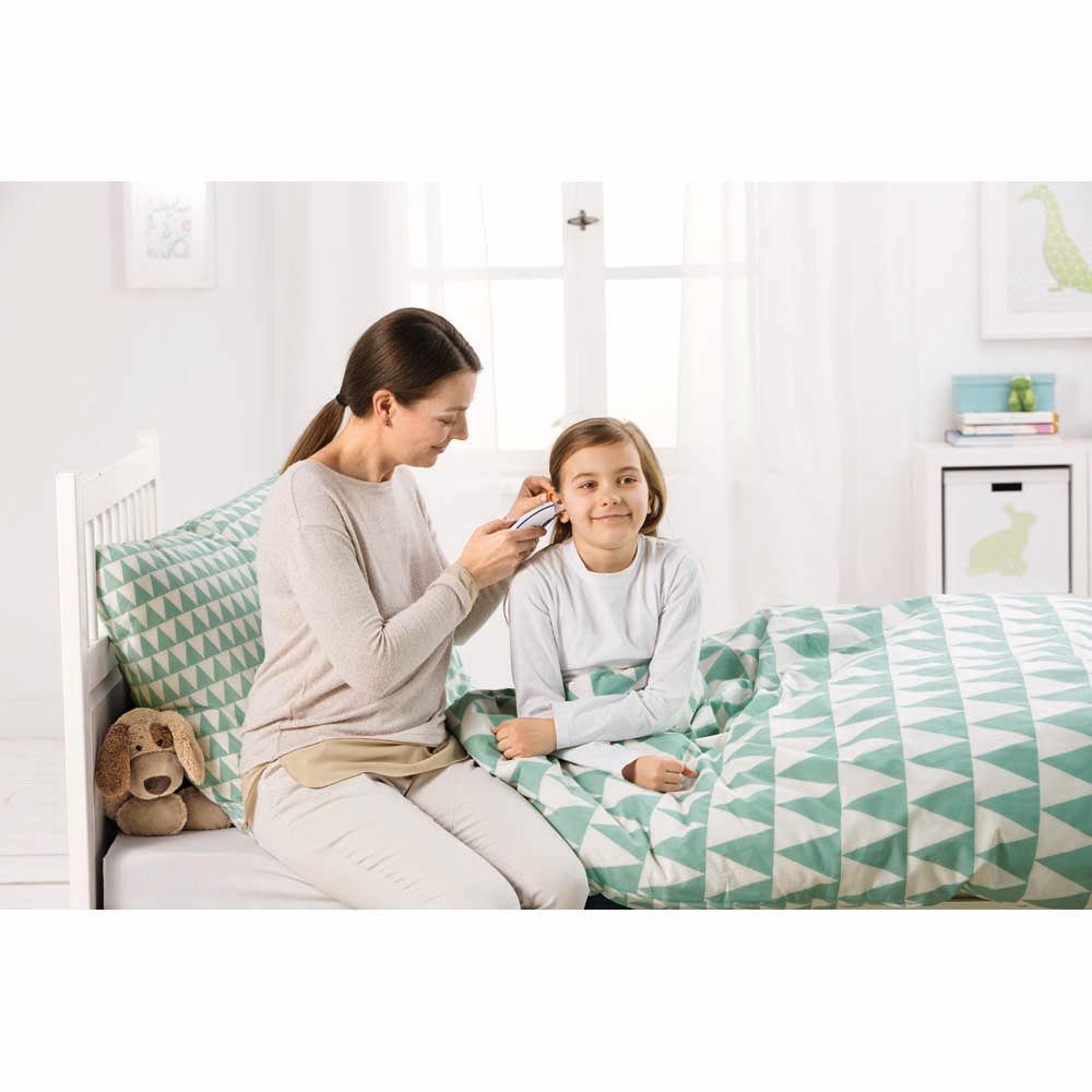 Veroval® 2in1 - инфракрасный термометр для измерения температуры в ухе или на лбу. Быстрые измерения (1 секунда для уха), высокая точность, подходит для взрослых и детей от 6 месяцев. В комплекте 10 одноразовых защитных колпачков, батарейки и коробка для хранения.