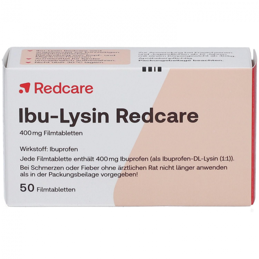 Ibu-Lysin Redcare 400 мг - противовоспалительное и обезболивающее средство для краткосрочного симптоматического лечения головной боли и мигрени у взрослых и подростков от 12 лет. Содержит ибупрофен в форме лизиновой соли для более быстрого действия. Выпускается в виде пленочных таблеток, по 50 штук в упаковке.