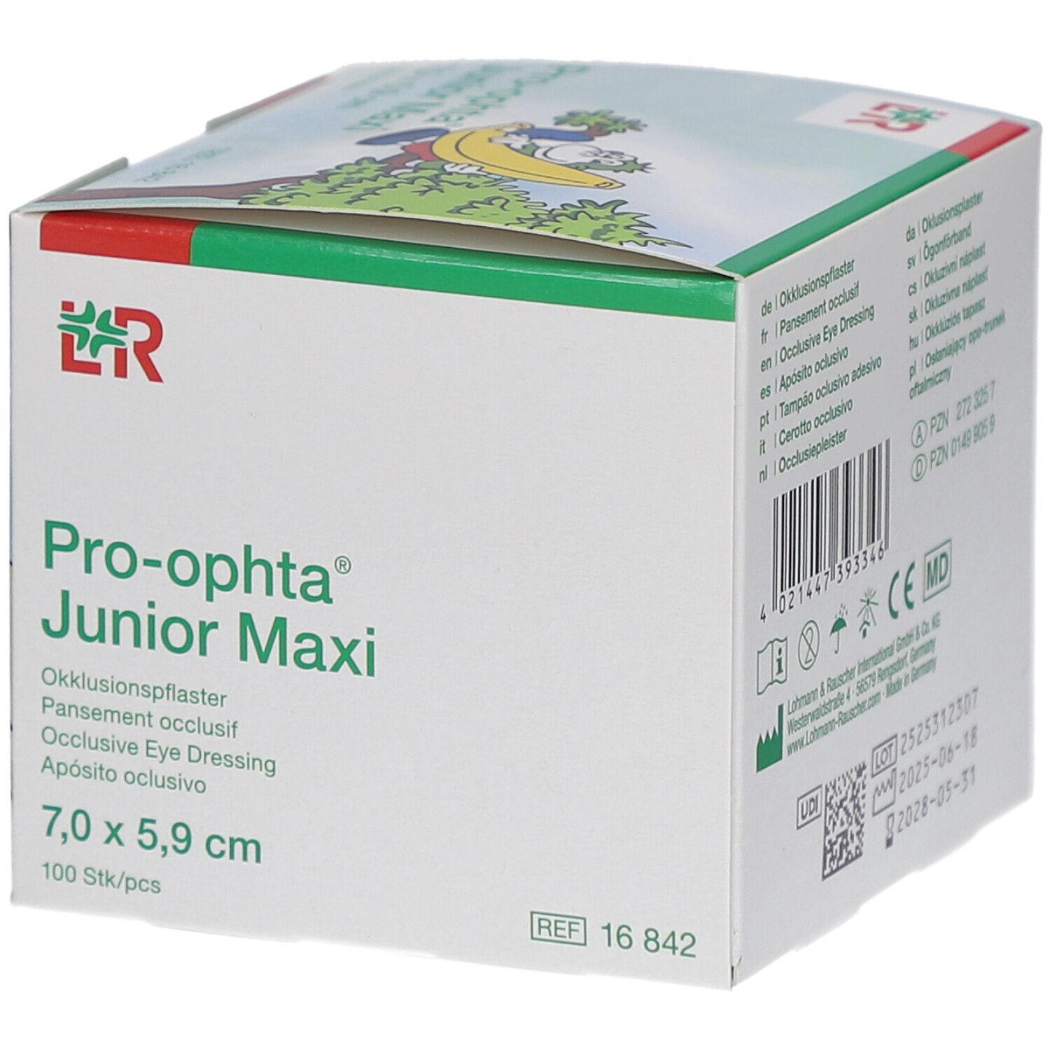 Pro-optha® Junior maxi - окклюзионный пластырь для детей для лечения косоглазия и амблиопии. Специально разработан для чувствительной детской кожи, обеспечивает полное затемнение глаза, воздухопроницаем и удобен в использовании. Имеет светонепроницаемый хлопковый центр и гипоаллергенный клей.