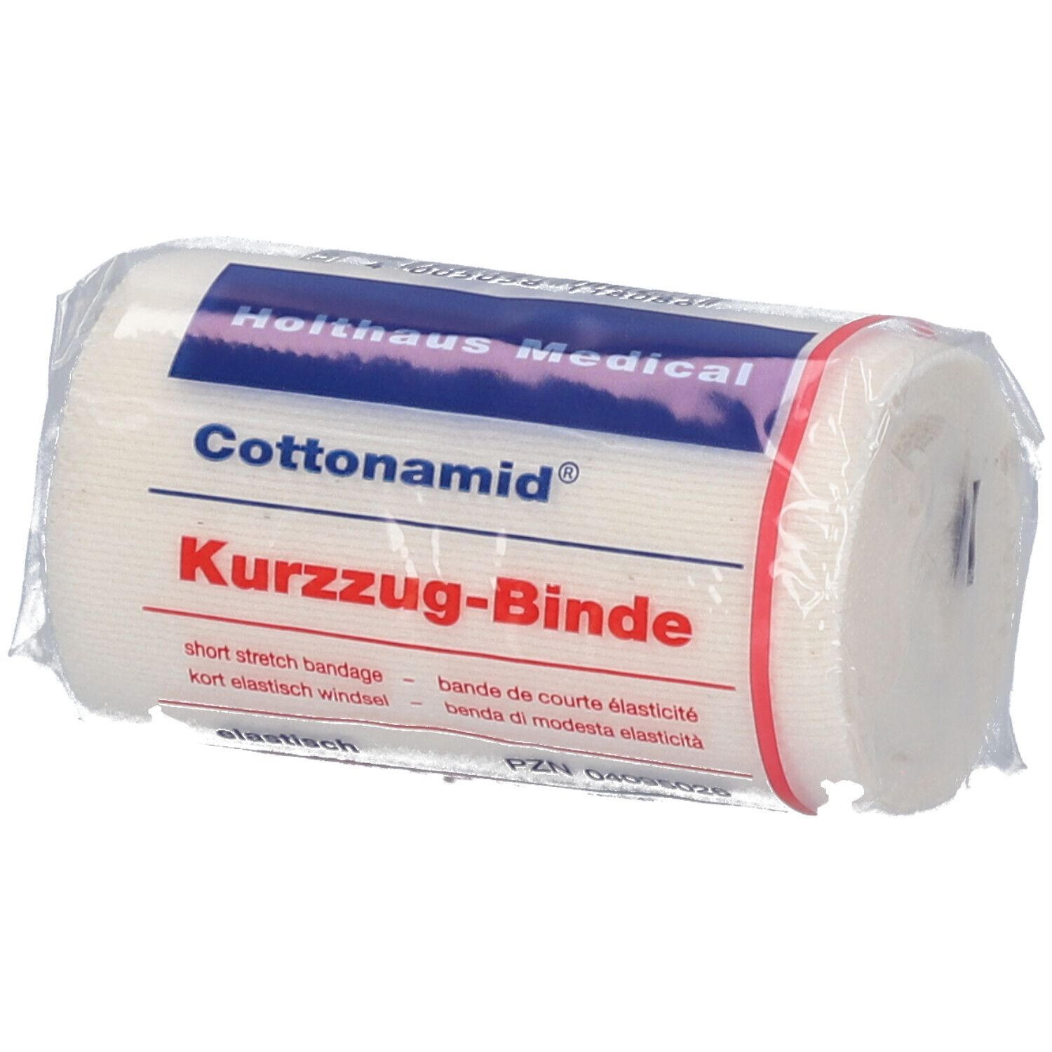 Cottonamid Kurzzug-Binde 8 cm x 5 m - медицинская короткоэластичная бинтовая повязка для создания легких компрессионных перевязок. Размер 8 см х 5 м, предназначена для фиксации раневых покрытий и оказания легкого компрессионного воздействия при различных медицинских процедурах.