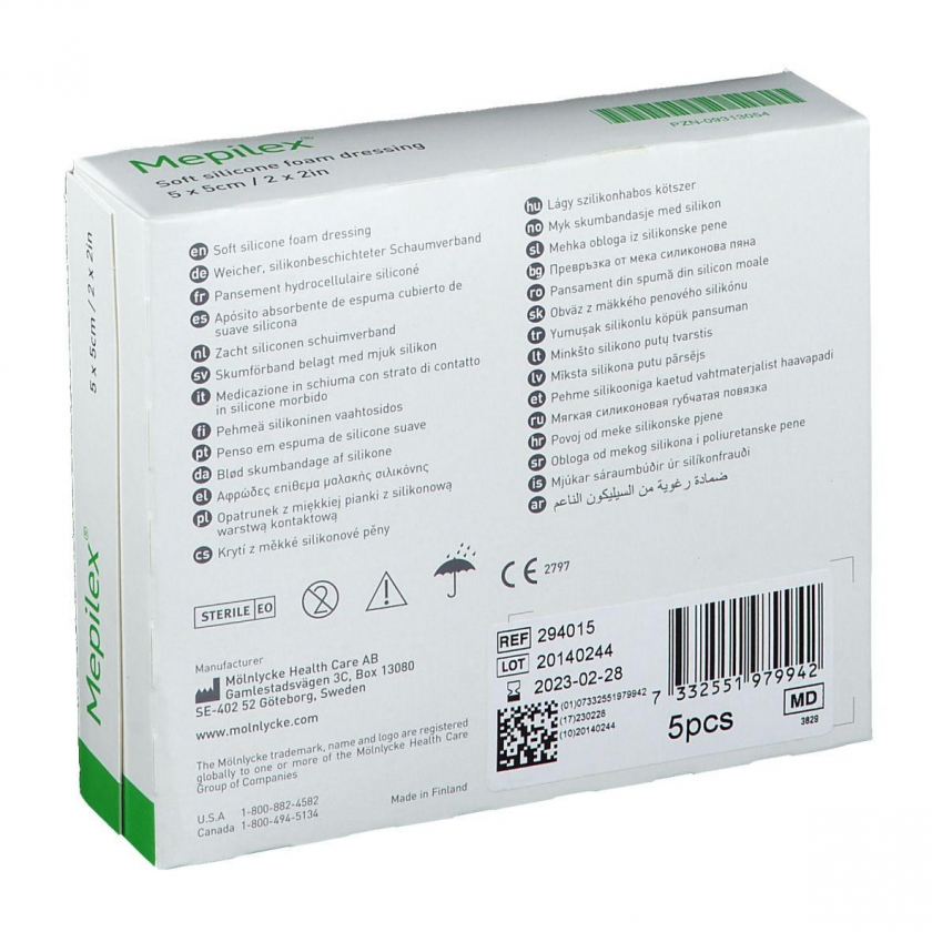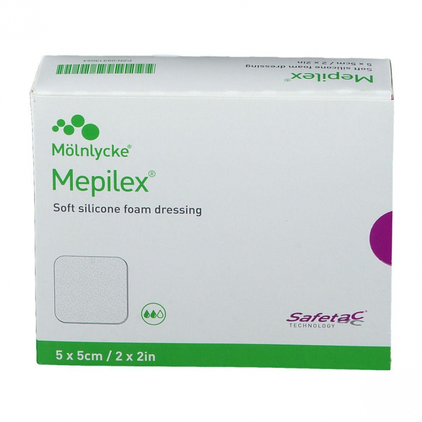 Мягкий силиконизированный пенопластовый перевязочный материал Mepilex® размером 5x5 см для ухода за ранами. Содержит полиуретановую пену с силиконовым покрытием, обеспечивает комфортную защиту и способствует заживлению ран.