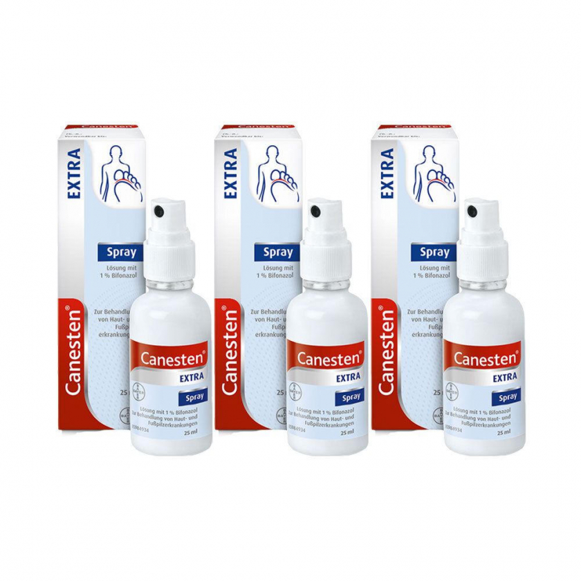 Canesten® EXTRA Bifonazol Spray - противогрибковый спрей для лечения кожных и грибковых заболеваний стоп. Содержит бифоназол, обладает широким спектром действия против дерматофитов, дрожжевых и плесневых грибов. Применяется 1 раз в сутки, обеспечивает гигиеничное нанесение без контакта с кожей. Обладает дополнительным противовоспалительным эффектом, снимает зуд, жжение и покраснения.