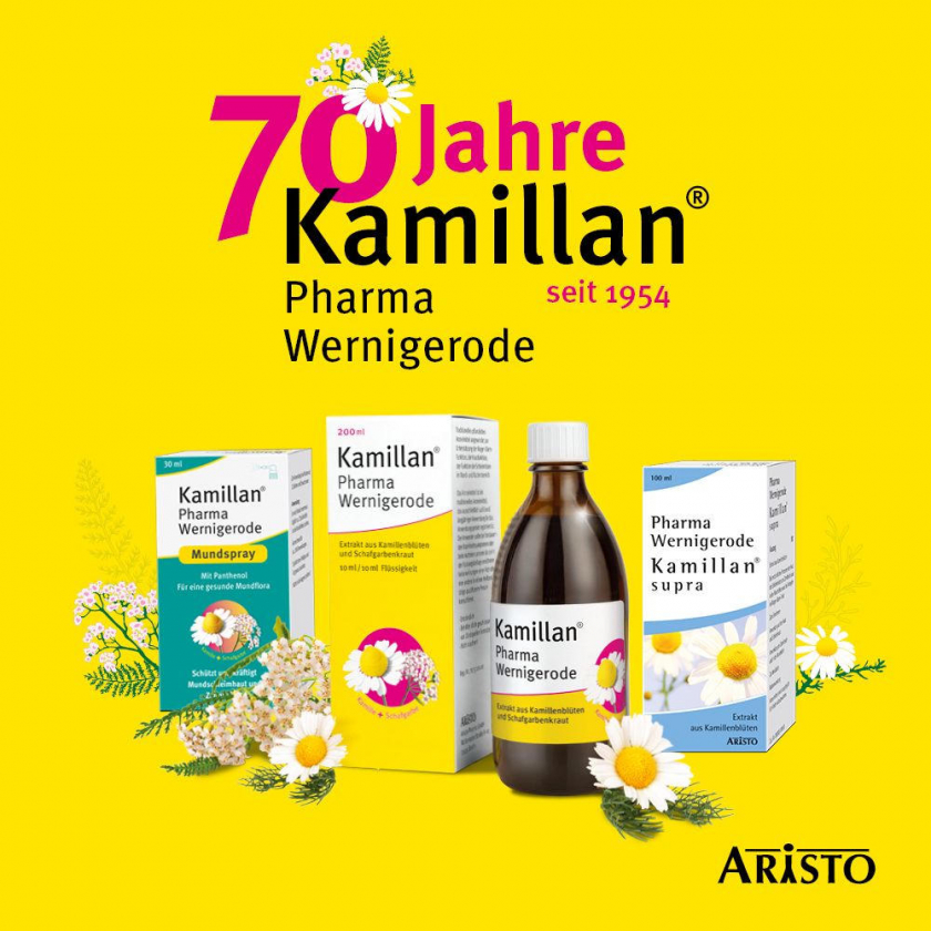 Kamillan® Pharma Wernigerode - традиционное растительное лекарственное средство для лечения воспалений кожи и слизистых оболочек, поддержки заживления ран и желудочно-кишечной функции. Содержит экстракты ромашки и тысячелистника, применяется внутренне и наружно при различных воспалительных состояниях.