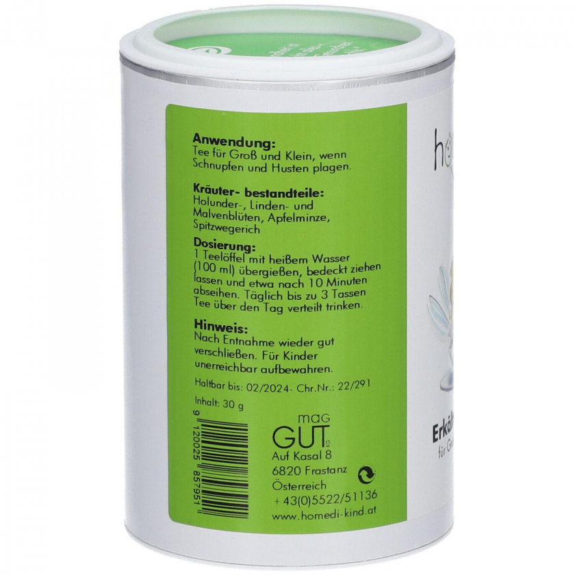 Травяной чай для лечения простуды для взрослых и детей. Содержит натуральные растительные компоненты: цветки бузины, липы, мальвы, яблочную мяту и подорожник. Произведен в Австрии, упаковка 30 г.