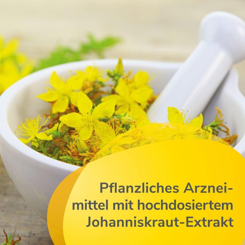 Состав: 900 мг экстракта зверобоя сухого (3-6:1), вспомогательные вещества: стеариновая кислота, кроскармеллоза натрия, гипролоза, гипромеллоза 2910, диоксид кремния высокодисперсный, крахмал кукурузный предварительно желатинизированный, целлюлоза микрокристаллическая, магния стеарат растительный, триглицериды среднецепочечные, рибофлавин, макрогол 4000, диоксид титана, тальк