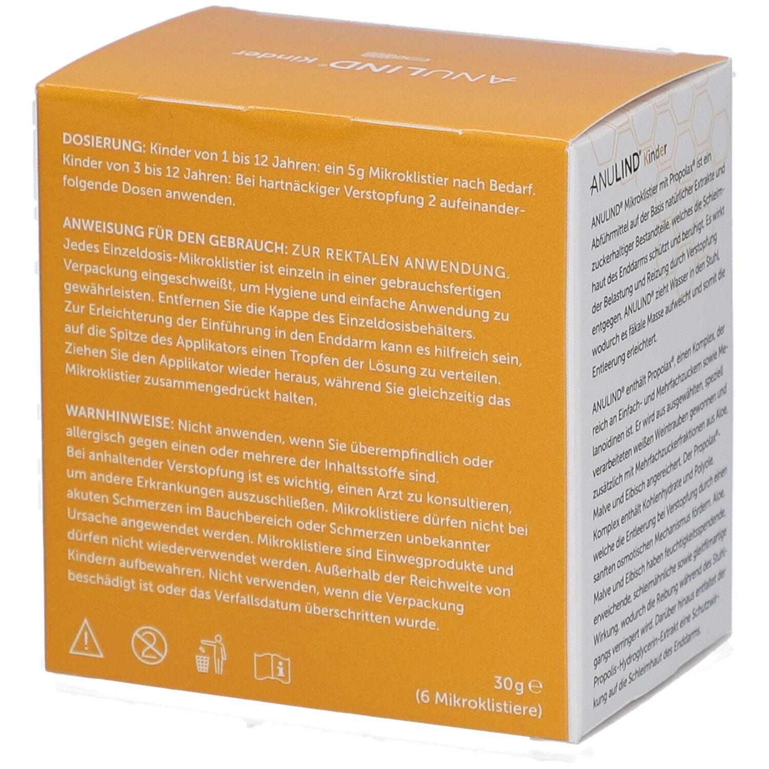 ANULIND® Mikroklistier Kinder - детское слабительное средство в форме микроклизмы на основе натуральных экстрактов. Защищает и успокаивает слизистую прямой кишки, мягко притягивает воду в кишечник, размягчает стул и облегчает опорожнение. Предназначено для детей от 1 до 12 лет при запорах.