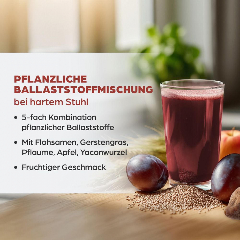 Растительное балластное средство для стимуляции кишечной деятельности при запорах и твердом стуле, подходит для детей от 4 лет и взрослых. Содержит комплекс растительных волокон и магний для нормализации пищеварения.
