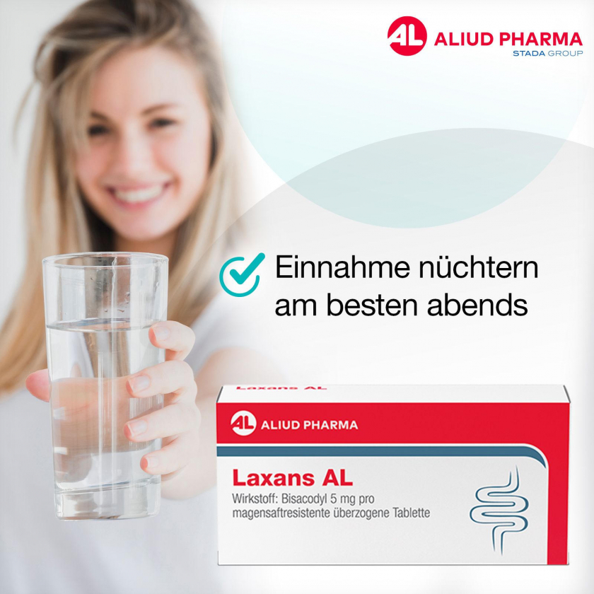 Laxans AL - слабительное средство на основе бисакодила для краткосрочного применения при запорах. Способствует облегчению дефекации, размягчает стул и стимулирует перистальтику кишечника. Подходит для взрослых и детей старше 2 лет (с учетом возрастных дозировок).