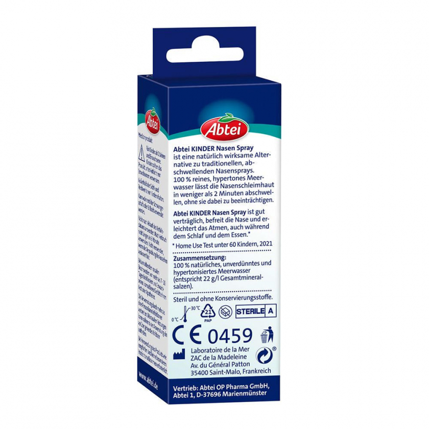 Abtei Kinder Nasen Spray - натуральное назальное средство на основе морской воды для детей от 2 лет и взрослых. Эффективно снимает заложенность носа, облегчает дыхание, не содержит консервантов и не вызывает привыкания. Безопасно при беременности и лактации.