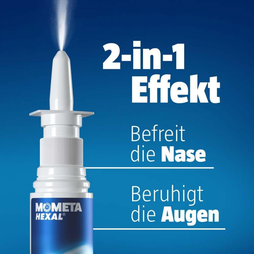 MometaHEXAL® - назальный спрей для лечения симптомов сезонного аллергического ринита (сенной лихорадки) у взрослых. Содержит мометазона фуроат, обладает двойным действием: антиаллергическим и противовоспалительным. Применяется 1 раз в сутки, обеспечивает 24-часовое действие, не вызывает сонливости и привыкания. Эффективно снимает симптомы аллергии: заложенность носа, насморк, зуд, чихание, а также облегчает симптомы со стороны глаз.