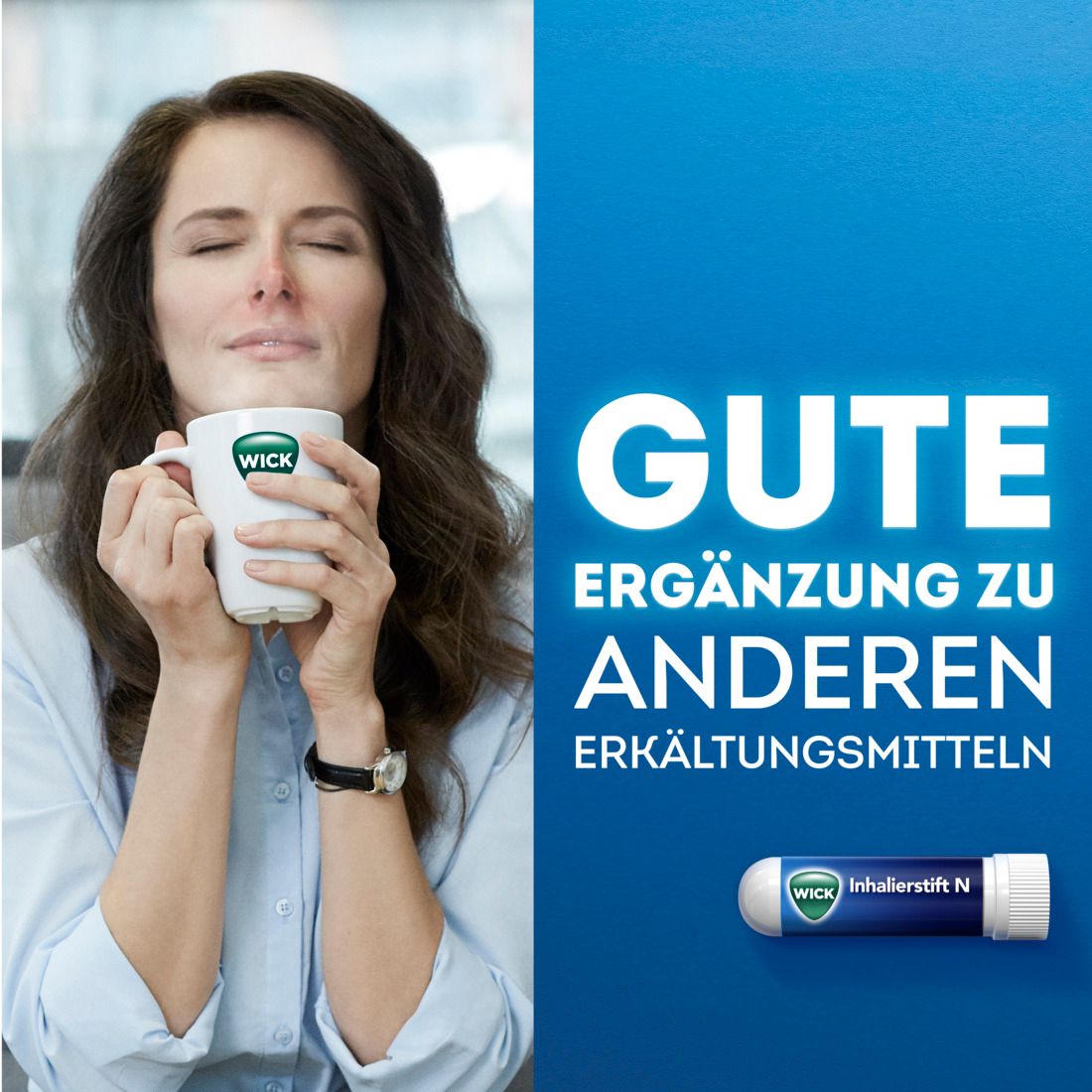 WICK Inhalierstift N - ингаляционный стик для облегчения дыхания при простуде и насморке. Содержит эфирные масла ментола и камфоры, обеспечивает быстрое облегчение заложенности носа. Компактный размер позволяет носить его в кармане и использовать в любом месте. Подходит для взрослых, подростков и детей от 6 лет.