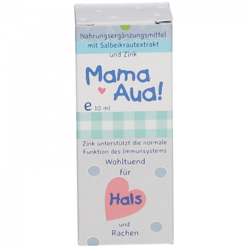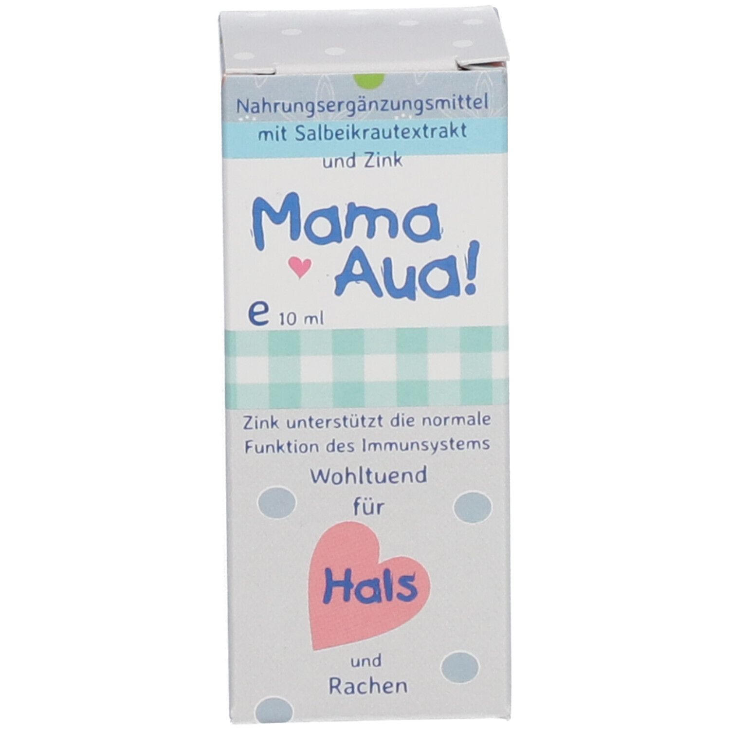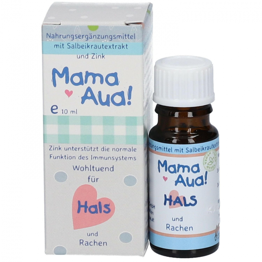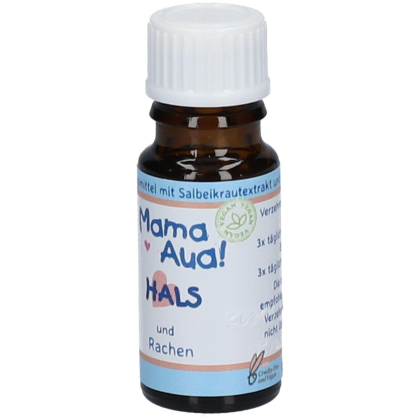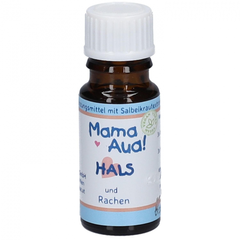 Натуральная биологически активная добавка Mama Aua! Hals для поддержания здоровья горла и ротовой полости. Содержит экстракты шалфея, мирры, прополиса, грейпфрутовых косточек и цинк. Без алкоголя, сахара, глютена, лактозы и искусственных консервантов. Подходит для взрослых и детей.