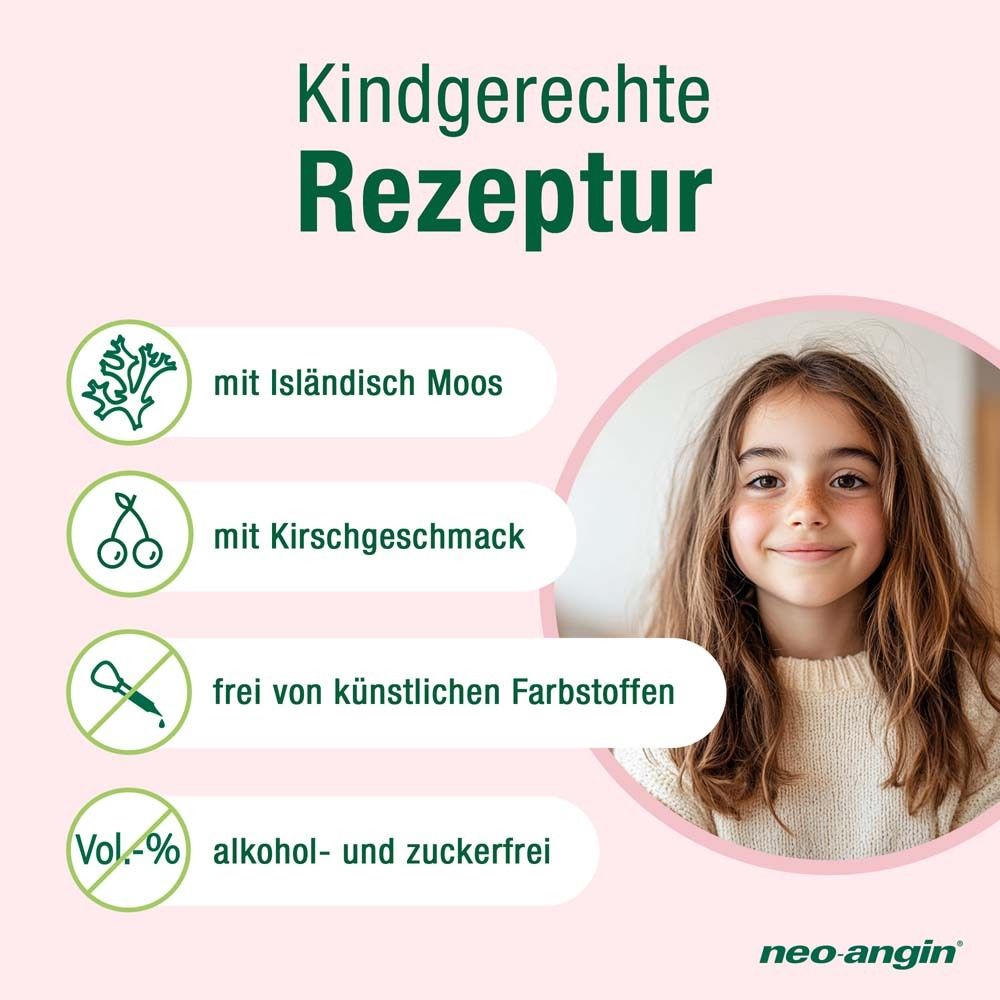 neo-angin junior Halsschmerzsaft mit leckerem Kirschgeschmack für Kinder ab 1 Jahr - zuckerfrei