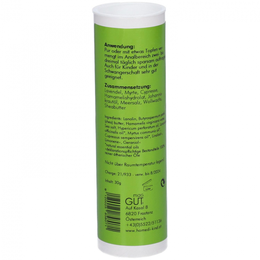 Натуральный бальзам для ухода за кожей при геморрое, трещинах, раздражениях и ссадинах. Содержит растительные масла и эфирные масла, успокаивающие кожу. Подходит для детей и беременных женщин. Применяется наружно 2-3 раза в день.