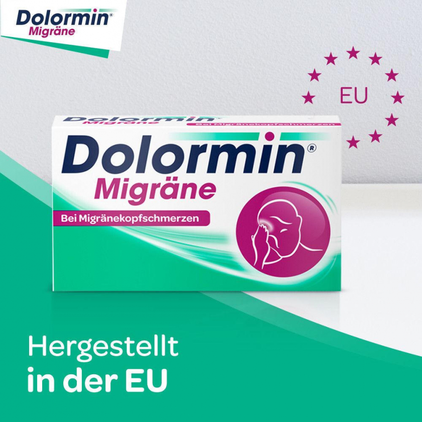 Dolormin Migräne - лекарственный препарат с ибупрофеном для быстрого облегчения мигрени и головной боли. Содержит 400 мг ибупрофена в форме ибупрофен-лизина для ускоренного всасывания. Подходит для детей от 6 лет (весом более 20 кг), подростков и взрослых. Оказывает обезболивающее действие продолжительностью до 8 часов.