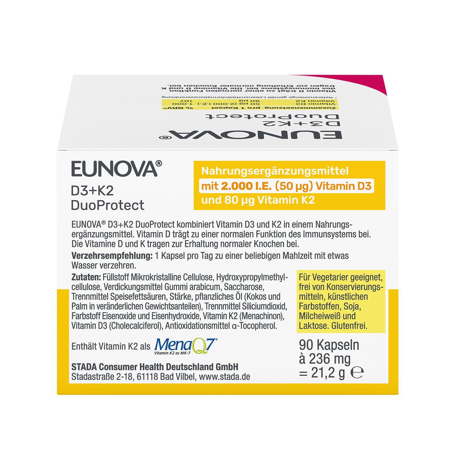 EUNOVA® D3 + K2 DuoProtect – 2.000 I.E. Nahrungsergänzungsmittel mit Vitamin D und K zur normalen Funktion des Immunsystems & Erhaltung normaler Knochen