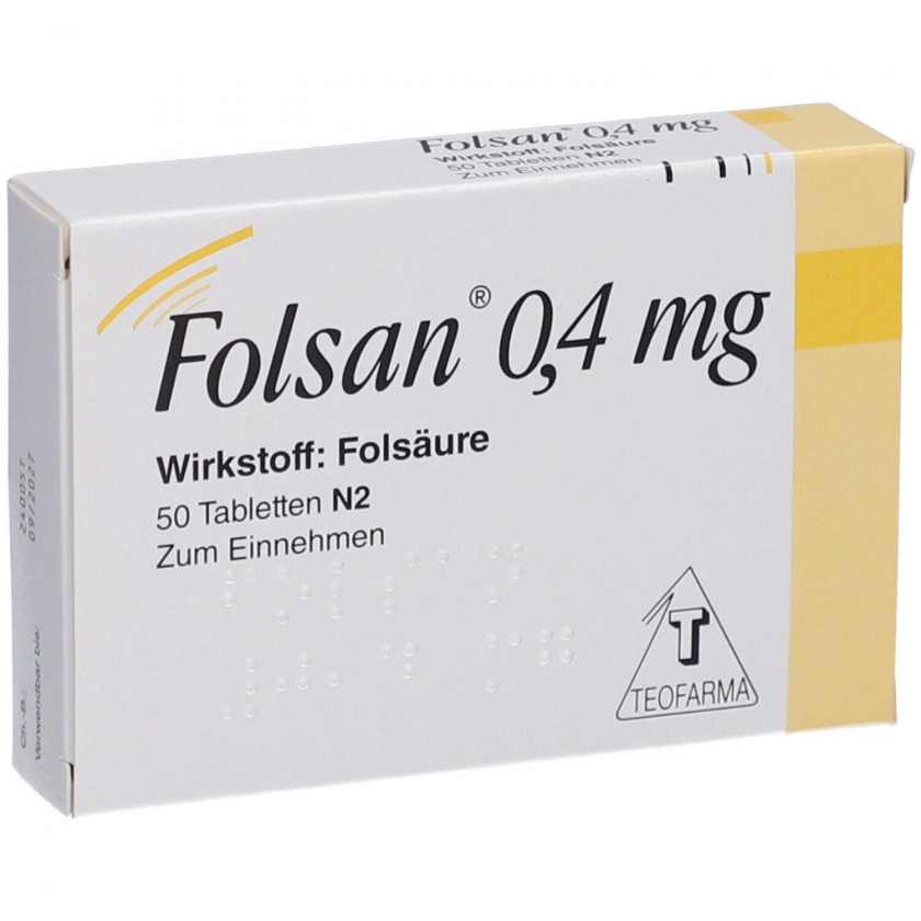 Folsan® 0,4 мг - лекарственный препарат для профилактики дефицита фолиевой кислоты и предотвращения дефектов нервной трубки у новорожденных. Содержит 0,4 мг фолиевой кислоты в каждой таблетке. Особенно рекомендуется женщинам до и во время беременности для снижения риска врожденных пороков развития у плода. Принимается по назначению врача.
