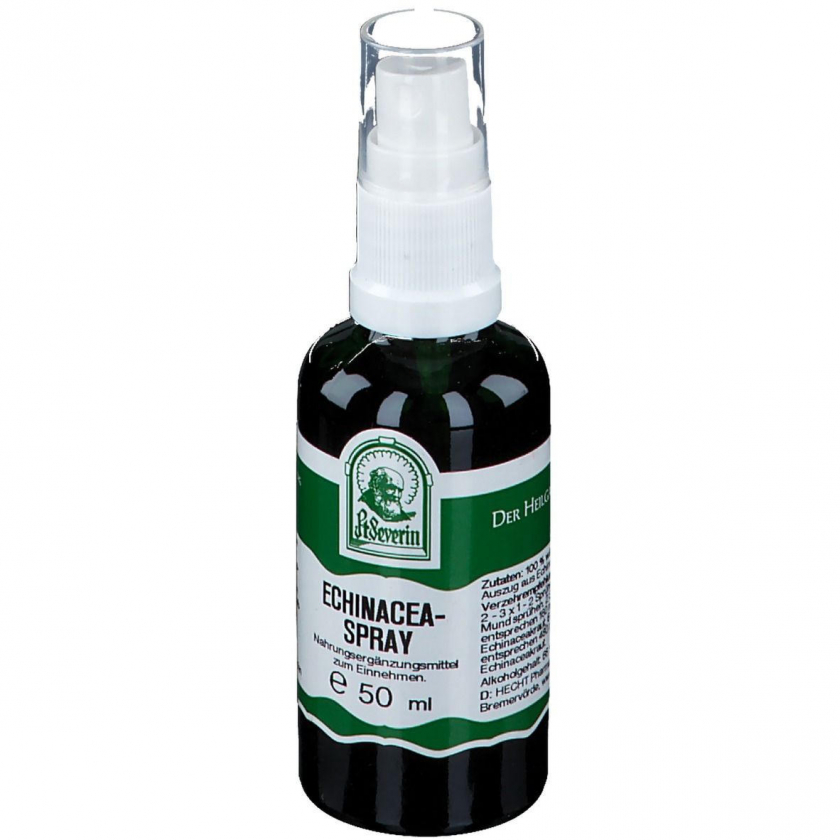 Hecht Echinacea Spray - это пищевая добавка на основе экстракта эхинацеи узколистной, предназначенная для укрепления иммунной системы. Содержит водно-спиртовой экстракт травы эхинацеи с содержанием алкоголя 66%. Применяется при необходимости по 1-2 распыления 2-3 раза в день непосредственно в рот. Производится в Австрии аптекой Stifts-Apotheke Gall-Reidlinger OHG.
