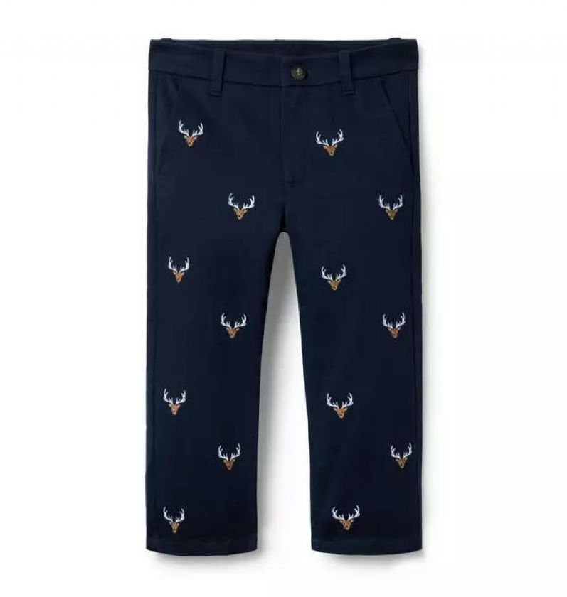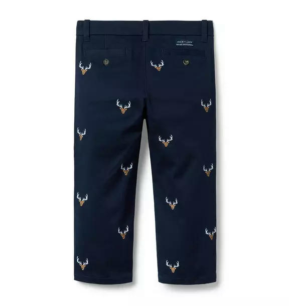 Our classic twill pant gets a charming twist with embroidered deer icons. In a straight leg silhouette, it's perfect for any festive occasion.