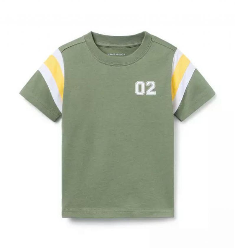 An athletic-inspired tee designed in soft cotton jersey. Featuring colorblocked sleeves and a screenprinted graphic at the chest.