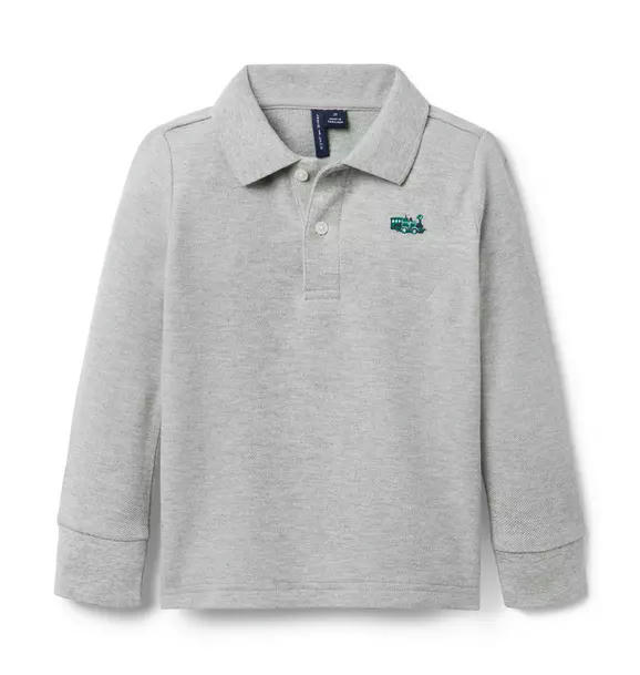 All aboard. Our classic long sleeve pique polo features an embroidered train icon at the chest and ribbed details too.