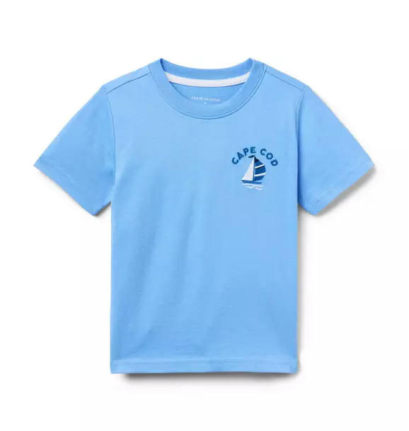 Sail away in style with our tee in soft cotton jersey. Detailed with an embroidered Cape Cod sailboat detail and a ribbed neck.