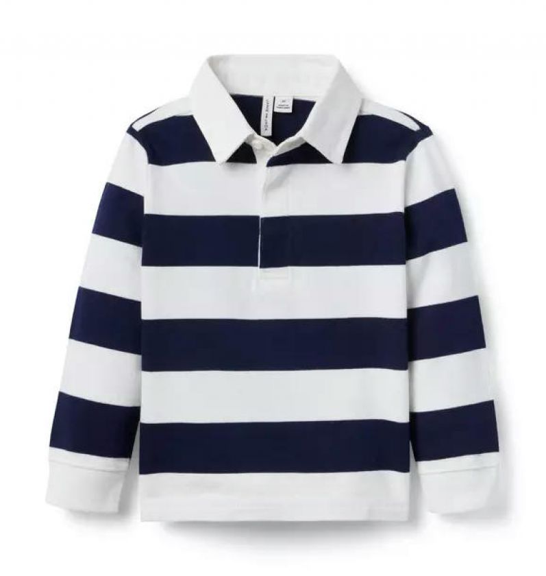 An old-school athletic look we love, this striped rugby shirt with a crisp collar is always a classic.