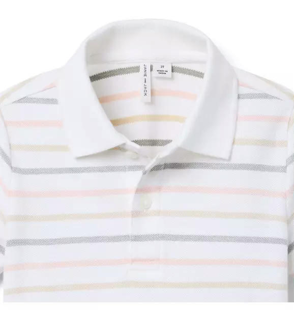A polo is always a good idea. Designed in pure cotton pique with pastel stripes and a ribbed collar and cuffs.